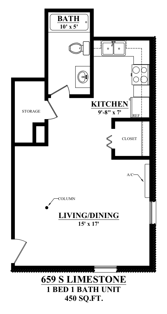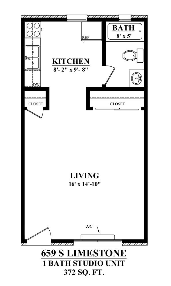 This 13-unit building offers spacious studio apartments across the street from the University of Kentucky Law School.